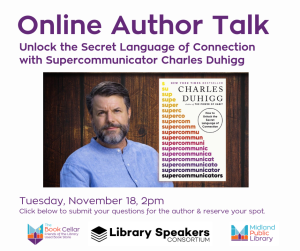 Unlock the Secret Language of Connection with Supercommunicator Charles Duhigg Tuesday, November 18, 2pm Register online & submit your questions for the author. Get yourself primed for the holiday season… |