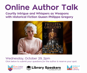 Courtly Intrigue and Whispers as Weapons with Historical Fiction Queen Philippa Gregory Wednesday, October 29, 2pm Register online & submit your questions for the author. Coined as the “queen of… |